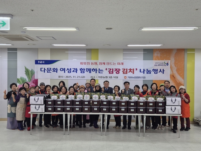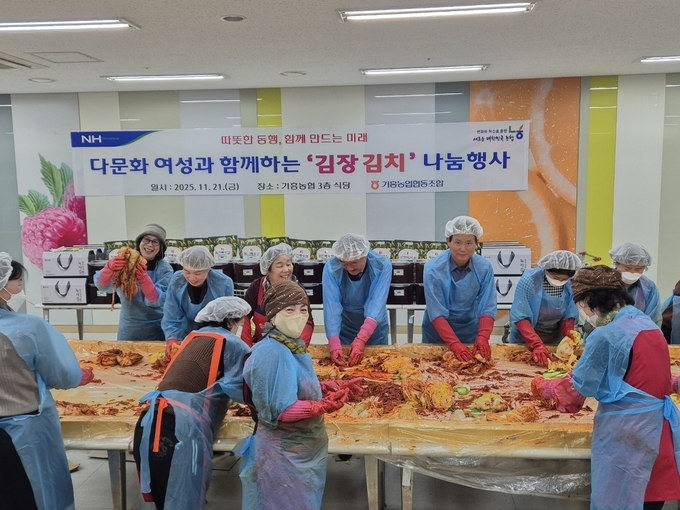 용인신문 | 기흥농협(조합장 한규혁)은 지난 21일 고향주부모임(회장 윤해주) 회원들과 다문화 여성 등 30여 명이 참석한 가운데 소외계층을 위한 사랑의 김장김치 나눔 행사를 진행했다.