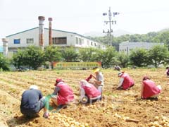 지난 9일 주민자치위원회(위원장 권오성), 면사무소 직원, 지역주민들은 초부리 감자밭에서 햇감자캐기 행사를 열어 100상자분의 감자를 수확했다. 이날 감자 판매금 및 행사참가비 등으로 모인 총140만원의 수익금 전액은 지역내 불우이웃 돕기에 쓰여 질 예정이이다.
