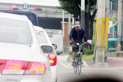 사람들로 북적이고 가로수에 광고물로 가득찬 인도로 다닐 수도 없는 노릇. 결국 차도의 한쪽을 이용해 보지만 차도에 가득한 매연과 자동차들의 위협은 자전거를 타는 것을 다시 한번 생각하게 한다. 자전거를 타는 것이 좋다는 허울 좋은 홍보보단 자전거를 타기 좋게 해주는 것이 우선이다.