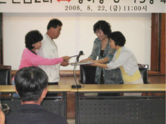 또 상하동 부녀회원들은 이날 자매결연 근삼리 박규호 씨 포도밭에서 5kg 40상자 분량의 포도를 수확하기도 하며 자매결연의 정을 나눴다.