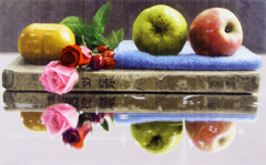 얼핏보면 사진이라고 생각할 정도로 섬세하기 그지없는 그의 작품들은 책위에 올려진 꽃, 과일 등의 정물을 바닥의 거울에 비친 모습과 함께 그려내 실재와 가상의 현실을 보여준다.