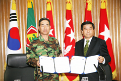 서정석 용인시장과 이상의 3군사령관이 시 관계자와 군 사령부 관계자들이 참가한 가운데 양해각서에 서명했다.