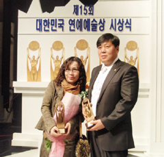 이날 박수자 회장은 한국예총회장상인 연예예술발전특별상을, 공정배 지부장은 문화체육관광부장관 표창인 연예예술발전 공로상을 각각 수상했다.