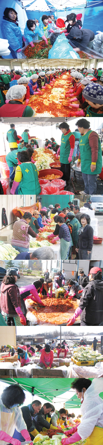 사랑의 김장김치 나누기 행사는 용인시 고향주부모임, 농가주부모임, 여성단체협의회가 자원봉사로 참여했으며 이들은 김장 배추 속에 양념과 함께 농업인의 정성스런 마음까지 가득 담아내느라 구슬땀을 흘렸다.