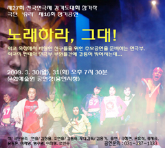 극단 유리의 공동창작극인 ‘노래하라, 그대!’는 학교 옥상에서 자살한 친구들을 위한 추모공연을 준비하는 연극부가 학교의 반대와 연극부 부원들 간의 갈등이 주요 이야기다.