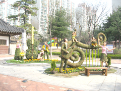 시에 따르면 시는 어린이 공원인 수지구 풍덕천동 도장골 공원에 ‘행복한 가족’과 ‘연주 가족’이라는 주제의 토피어리를 설치했다.