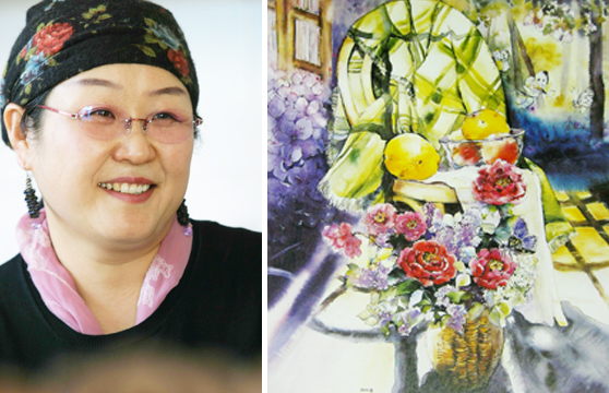 전시의 주인공은 한국미협회원이자 처인구 역북동에서 수수꽃다리 화실을 운영하는 김영란씨.