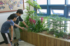 우선 학생들의 눈높이에서 자연을 아끼고 친환경적 정서를 심어 주기 위해 학교 실내 공간을 그린화하는 것이다.