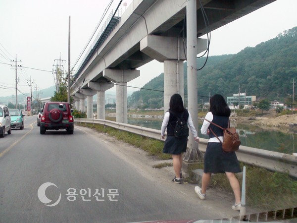 용인정보산업고등학교와 고림중학교 학생들이 이용하는 이 도로는 인도는커녕 도로를 건널 횡단보도조차 없어 학생들이 위험을 무릅쓰고 이용해야 한다.