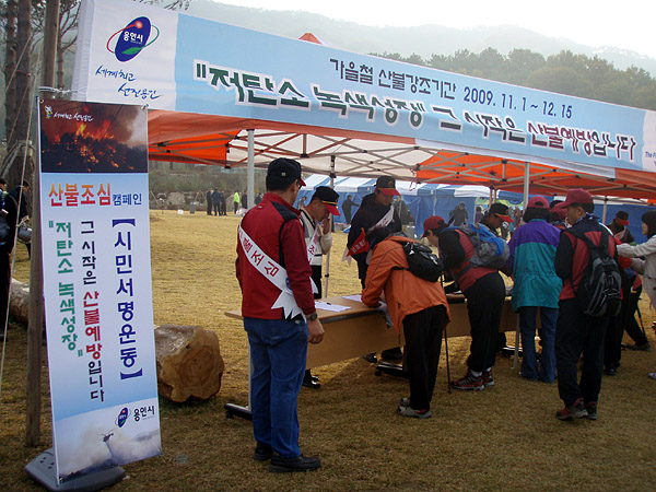 이를 위해 시는 지난 25일 처인구 모현면 초부리에 위치한 용인자연휴양림에서 제6회 용인시장기 등산대회 참가자 2000여명을 대상으로 산불조심 캠페인 시민서명운동과 진화장비 전시 등 산불조심 참여의식을 확산시켰다.