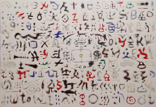 이번 전시에는 초등학교라는 한정된 공간이 점차로 아이콘화 되어 화면의 중심으로 이동하고 주변으로 많은 상형들이 들어와 그러한 양상이 강화되고 압축되었다.