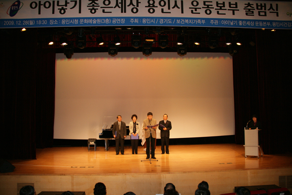 용인시 아이낳기 좋은세상 운동본부의 출범식이 지난달 28일 용인시 문화복지 행정타운 문화예술원 공연장에서 열렸다.