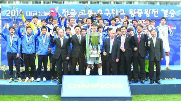 신갈고는 후반 27분 김동혁 선수가 문전 혼전상황에서 골을 만든 울산현대고를 2대1로 물리쳐 우승을 차지했다.