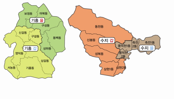 또 수지구도 지난해 지방선거 당시 경기도의원 제6선거구(죽전1·2, 풍덕천1·2)와 제7선거구(상현1·2,신봉·성복,동천)로 분구하는 방안을 내 놓았다.