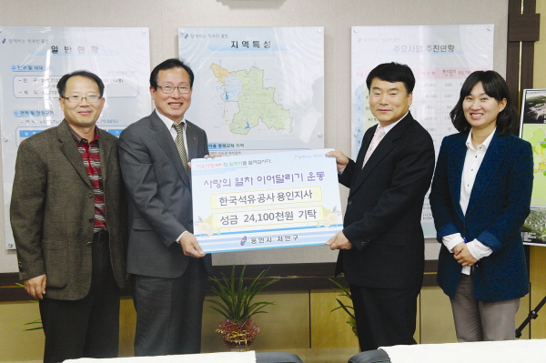 한국석유공사 용인지사(지사장 김형태)는 지난 15일 처인구청장실에서 ‘저소득층 난방비 지원’ 전달식을 가졌다.