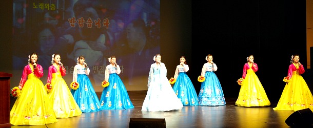 기념식을 마친 후에는 북한 대규모 예술단인 평양백두한라예술단(단장 김영옥)이 본 공연에 나서 귀에 친숙한 ‘반갑습니다’를 시작으로 ‘우리의 소원’까지 노래와 춤을 선보였다. 우태주 회장은 “통일한국을 준비하는 마음으로 행사를 준비했다”며 “북한 탈북민을 반기는 마음으로 화합하는 모습을 보여줄 것”을 당부했다.
