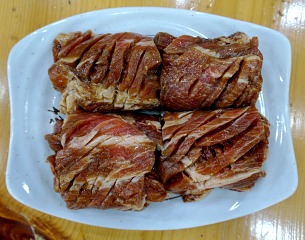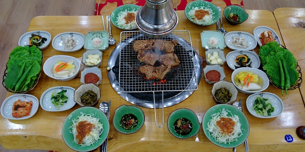 이어 “고기를 굵고 얇게 썰어 급한 손님은 얇은 쪽을, 덜 급한 손님은 굵은 쪽을 드실 수 있게 했다”며 “익기 전에는 뒤집지 마라. 잘 구워진 고기는 촉촉하게 윤기가 난다”고 말했다. 고기판도 직접 제작해서 참숯만의 흰 연기를 볼 수 있다.