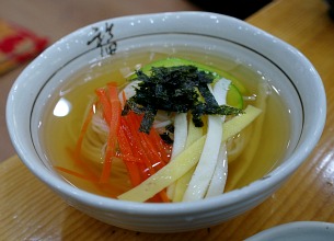 식사가 끝나고 약간 아쉬운 고객에게는 소면을 무료로 제공한다. 양은 적지만 맛은 일품이다. 오히려 소면 맛을 본 손님들은 부른 배를 무릅쓰고 일어나지 못할 정도의 무리를 한다.
