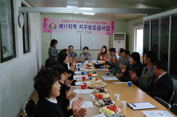 지구보조금사업은 11지역(백암, 성산, 원삼, 용인, 중앙, 처인)에서 3600지구보조금 460만원을 지원하고 성산로타리클럽에서 출연한 587만 2000원 등 총 1047만 2000원으로 CLC이주민센터에 씽크대, 식탁, 가스렌지, 수납장 등을 설치했다.
