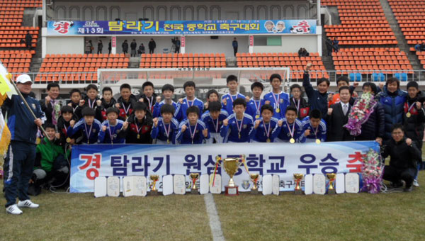 (재)용인시 축구센터 소속 원삼중학교 축구팀이 제13회 탐라기 전국중학축구대회에서 정상에 오르며 올 시즌 첫 우승을 신고했다.