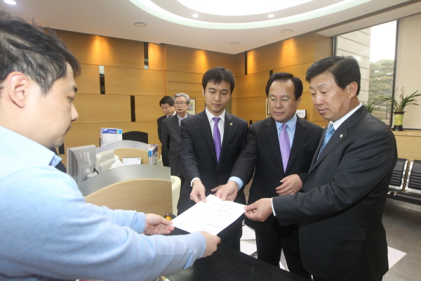 김학규 시장은 지난 6일 이상철 시의회 의장과 선거구 조정의 희생양이 된 기흥구 동백동과 마북동, 수지구 상현동 주민대표들과 함께 헌법재판소를 방문, 헌법소원 및 가처분신청서를 제출했다.