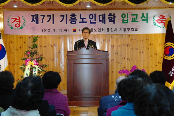 지난 15일 기흥구노인회(지회장 이양구) 2층 대회의실에서는 기흥노인대학(학장 김상모)의 제7기 입교식이 열렸다.