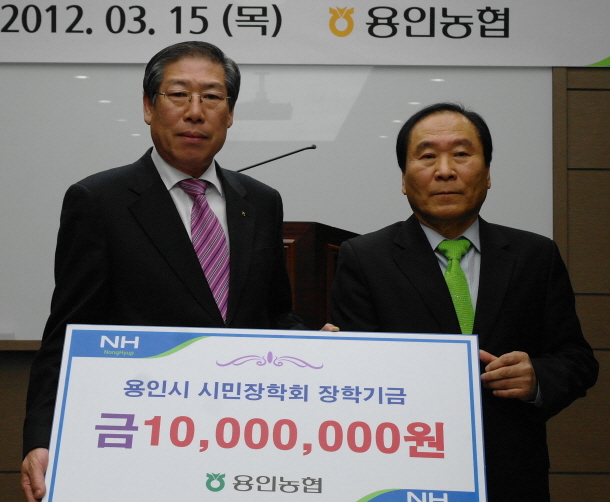 용인농업협동조합(조합장 조규원)은 지난 15일 본점 2층 회의실에서 2012년 조합원자녀 장학금 및 시민장학회 장학기금 전달식’을 가졌다.