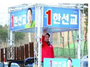 한 후보 측 관계자는 “로고송과 큰 소리로 말하는 유세보다는 아파트와 상가 구석구석을 돌며 주민들과의 접점을 넓히는 데 주력하자는 것이 한 후보의 생각”이라고 말했다.