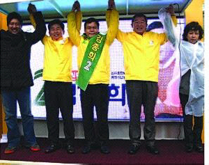 한국노총 이용득 위원장과 이석행 전 민주노총 위원장 등 노동계 주요 인사가 용인병 선거구 민주통합당 김종희 후보 지원 유세에 나섰다.