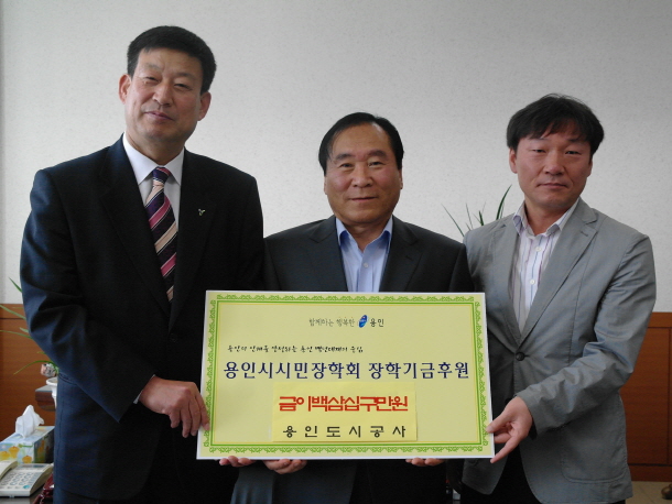 용인도시공사는 지난 24일 용인시민장학회 사무실에서 최광수 사장과 남종섭 노동조합 위원장이 참석한 가운데 김기원 장학회 이사장에게 장학금 239만원을 전달했다.