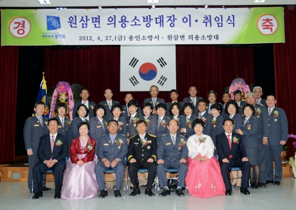 용인소방서 원삼면 의용소방대장 이·취임식이 지난달 27일 원삼면사무소 2층 대회의실에서 열렸다.