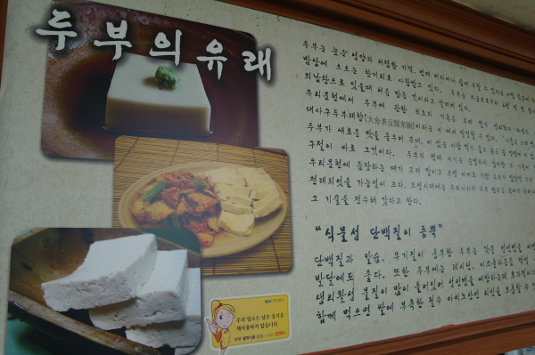 “손두부를 재래식으로 직접 만들었습니다. 지금은 손두부, 횟두부, 두부부침, 순두부비지찌개, 두부해물전골 등 두부요리를 비롯해서 닭도리탕, 갈치조림, 청국장, 보리밥, 김치찌개에 계절별미인 콩국수까지 다양한 음식으로 손님입맛을 만족시키고 있습니다.”