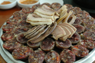 전통순대와 찰순대, 오소리감투, 혀, 머리고기, 허파, 간 등 용인전통순대국집에 있는 모든 것을 맛볼 수 있는 전통순대모듬은 맛도 일품이지만 한여름 지친 기력을 보충할 수 있는 영양 만점의 보양식이다.