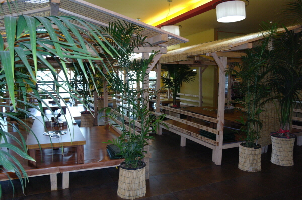 실제 입구부터 심어진 나무와 내부의 화분 목은 들어서는 순간 자연을 느낄 수 있으며 200여석의 홀은 원두막 형태로 꾸며 마치 시골 과수원의 한가운데서 요리를 즐기는 듯하다.