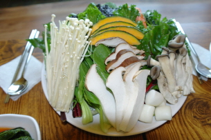 여기에 농장을 직영하며 키운 배추, 얼갈이, 근대, 청경채 등 10여가지 야채를 끓이며 적당히 손질한 한방유황오리를 넣으면 배부른 줄 모르고 젓가락이 향한다.