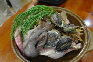 함초전복오리백숙은 전복, 낙지, 다슬기, 새우 외에 녹각, 엄나무, 황기, 뽕나무 등 10여가지 한약재가 어우러졌으며 우리 몸의 다방면으로 건강에 무궁무진한 효능을 가진 함초가 들어간 보양식으로 개발됐다. 전복은 4개가 기본이지만 인원이 많을 때 한두 개 서비스도 가능하다. 남은 육수에 끓이는 찰밥 죽도 든든한 포만감을 주는 별미로 자리했다.