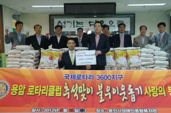 6. 지난 19일 용인 용암로타리클럽 김종완 회장과 회원들은 용인시장애인종합복지관을 방문, 가정 형편이 어려운 장애인을 위해 준비한 쌀 100포를 전달했다.