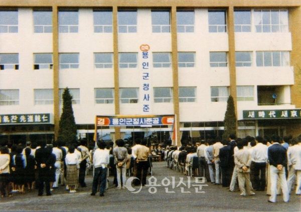 | ▲ 지난 1982년 당시 용인군청사 준공 모습. 지난 30여년 간 사용된 이 청사는 용인지역 공공청사 중 가장 오래된 곳으로 현재 처인구청사로 사용 중이다.(용인신문 자료사진) | ||