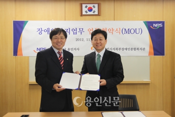 4. 지난 21일 국민연금공단 용인지사 회의실에서는 용인시서북부장애인종합복지관과 국민연금공단 용인지사의 복지 발전·증진을 위한 MOU 체결이 있었다.
