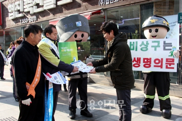 5. 용인소방서는 지난 21일 ‘생명의 문 비상구’란 주제로 중앙시장을 비롯해 다중 운집지역 11개소를 선정, 600여명이 참여하는 안전관리 캠페인을 실시했다.