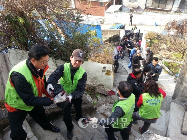 7. 중앙동 주민자치위원 20여명은 지난 21일 김량장동의 홀몸어르신 2가구에 용인로타리클럽에서 지원받은 연탄 600장으로 사랑의 연탄나눔 봉사를 펼쳤다.