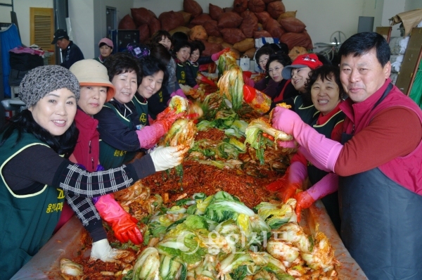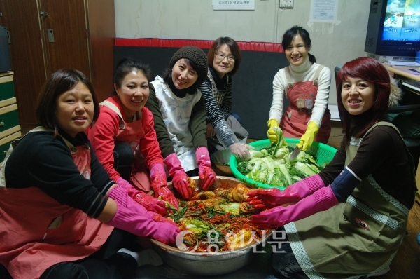 상갈동 새마을부녀회는 지난 21~22일 동주민센터 지하 1층에서 소외된 이웃에게 따뜻한 온정의 손길을 나누고자 직접 재배한 배추와 무로 ‘사랑의 김장담그기’행사를 가졌다.
