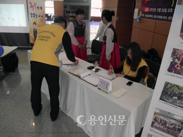 용인송담대학교(총장 최성식) 사회봉사단은 지난달 24일 용인시청 내 시민예식장에서 열린 사립문(회장 김진희) 주최 ‘제 6회 북한이탈주민 3쌍 합동 초례청’에 후원 및 봉사활동을 실시했다.
