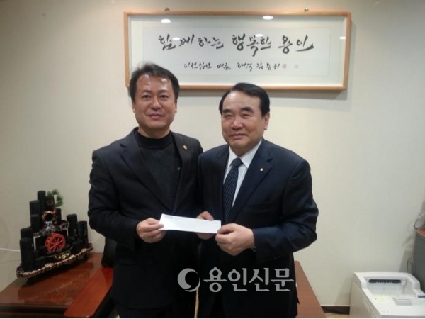 지난 11일 경기도의회 경제과학기술위원회 소속 오세영 의원(민주통합당. 용인1)은 재단법인 용인공원(대표 김동균)으로부터 후원금과 장학금을 전달받았다.