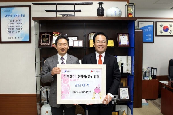 5. 용인 시내버스업체인 경남여객 남경훈 대표가 7일 시장실을 방문, 지역 내 어려운 이웃을 위해 사용해 달라며 성금 2000만원을 기탁했다.