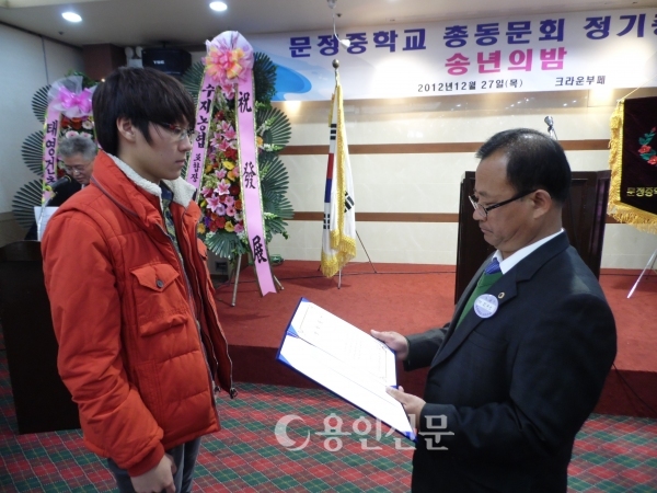 지난 27일 수지농협 지하 크라운뷔페에서는 문정중학교 총동문회(회장 최우섭) ‘2012년 정기총회 및 총동문회의 밤’ 행사가 열렸다.