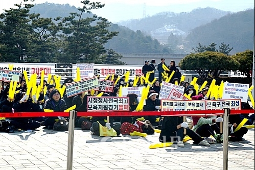 매년 보육정책위원회가 열릴때마다 보육시설 원장과 교사, 학부모 등이 시청사에서 항의 집회를 열고, 경찰이 이를 제지하는 모습이 반복되고 있다.