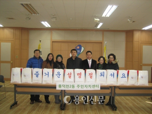 풍덕천 2동주민자치위원회는 매년 명절이면 불우이웃을 위한 음식나누기 행사를 열고 있으며 이번 행사에는 주민자치위원장, 자치위원, 자원봉사자 30여명이 떡국떡(2㎏/25박스)과 멸치(25박스)를 홀몸어르신, 저소득가구 등 25세대를 직접 방문, 전달했다.
