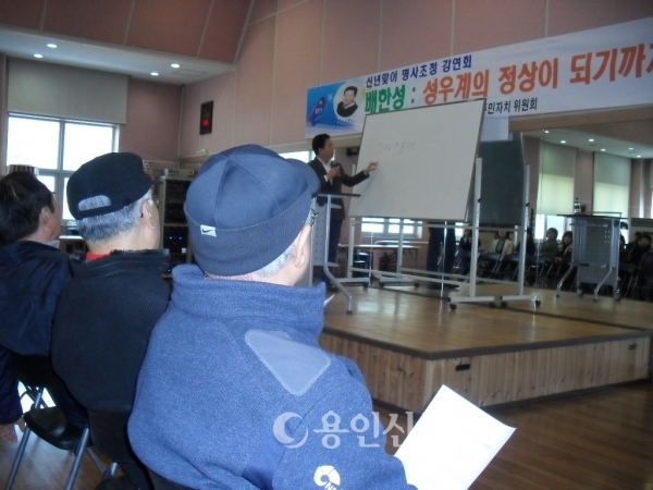 신봉동주민자치센터(위원장 김선애)는 지난 18일 주민센터 3층 아름실에서 새해맞이 명사초청 강연회를 열었다.