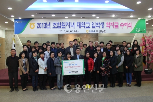 구성농협(조합장 최진흥)은 지난 3일 대회의실에서 농업인 조합원의 자녀 학비 부담을 덜고 지역인재를 육성하기 위한 조합원 자녀 장학금 전달식을 가졌다.